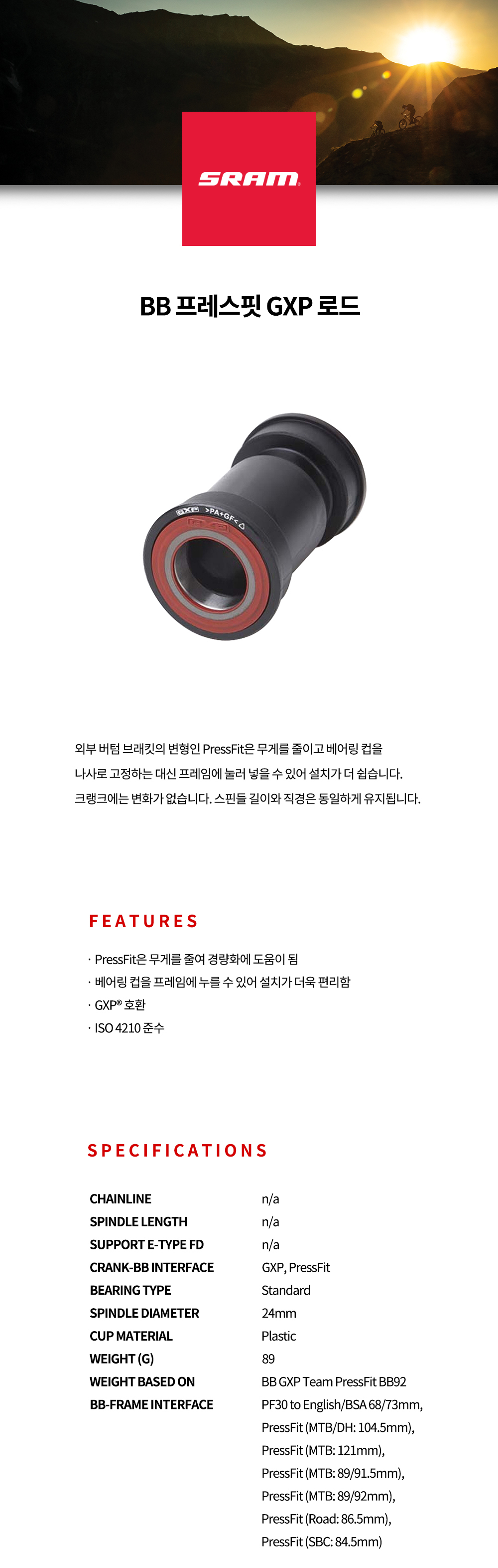 [SRAM] BB GXP ÇÁ·¹½ºÇÍ ·Îµå ºñºñ (BB86)